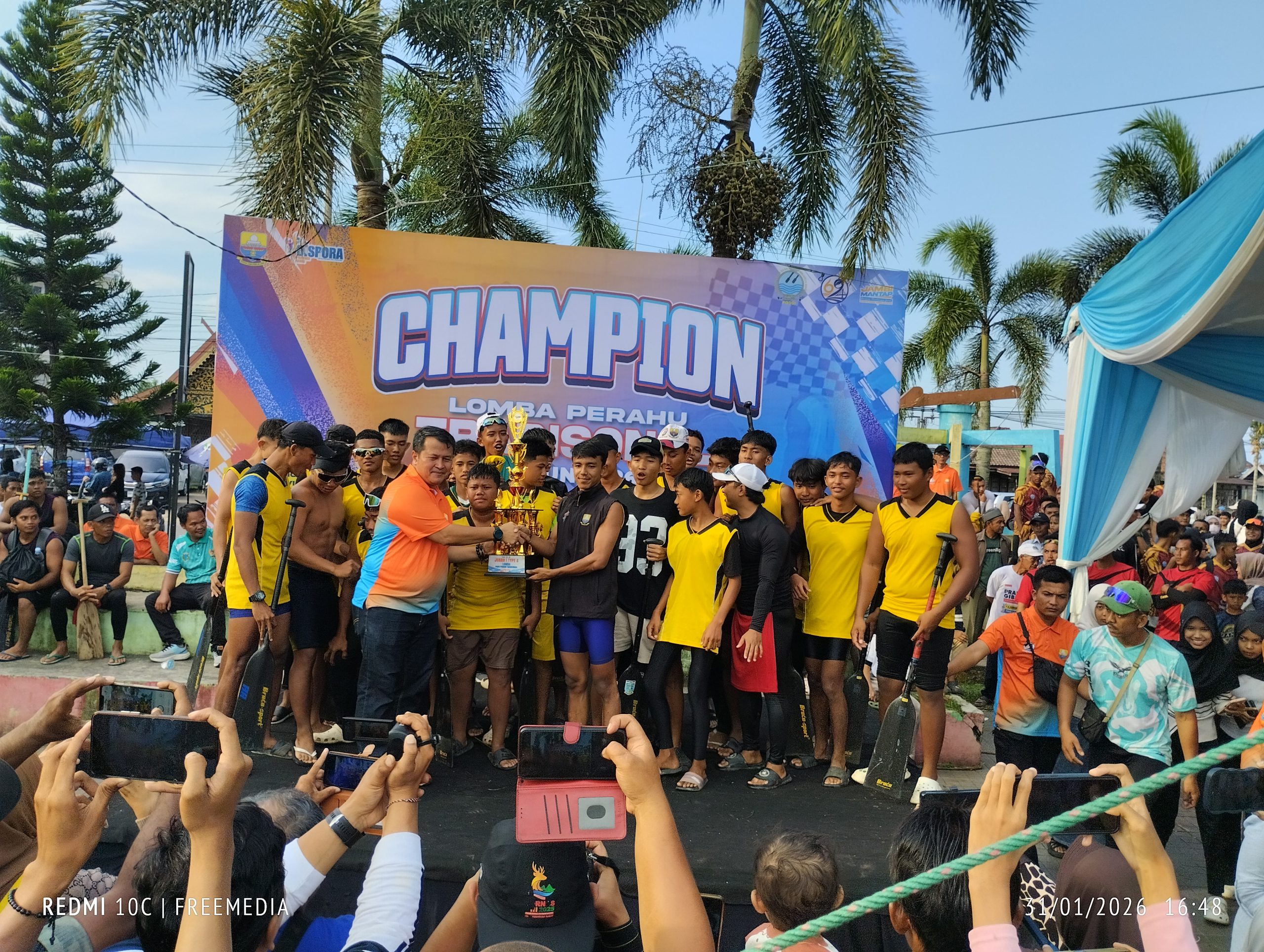 - Penyerahan trofi kemenangan dilakukan langsung oleh Kepala Dinas Pemuda dan Olahraga Provinsi Jambi, Novriadi, AP., M.Si, kepada manajer Tim BPRKP Kota Jambi Danau Sipin sebagai bentuk apresiasi atas prestasi yang diraih.